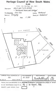 This Wikipedia article was originally based on Northwood House & Cottage, entry number 00440 in the New South Wales State Heritage Register published by the State of New South Wales (Department of Planning and Environment) 2018 under CC-BY 4.0 licence, accessed on 1 June 2018.