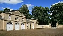 It is built in two storeys with a four-bay frontage to a square floor plan of brick with a Westmorland slate roof. The nearby stable block is also grade II* listed.[1]