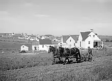 In April 1934, federal officials acquired 1,326 acres (5.37 km2) of farmland in Mount Pleasant Township, and announced construction of the Westmoreland Homesteads. Following Division guidelines, local architect Paul Bartholomew designed the planned community's buildings and its overall layout. On 772 acres (3.12 km2) he arranged 254 individual lots, ranging in size from 1.7 to 7 acres (28,000 m2), in six, mostly curvilinear sections. Each lot was to feature a simply designed, 1+12-story Cape Cod. Originally, the houses were available in 4- to 6-room models, with a living room, eat-in kitchen, utility room, bathroom and bedroom space. Utilities included water and electricity. The remaining 728 acres (2.95 km2) Bartholomew reserved for a cooperative farm, a schoolhouse, playground, post office, and other common buildings. These original depression-era Cape Cod–style homes are called "Norvelt Houses" by the locals. A six-room house on more than 2 acres (8,100 m2) sold for $2131.28, a price that reflected annual mortgage payments of $212.50, which was one-fourth of the prospective purchasers' estimated annual cash income of $850, and a 40-year mortgage at 3% interest.[7] Over 1,850 applied for the government properties, which spanned nearly 1,500 acres. Two hundred and fifty four families received houses.[8]