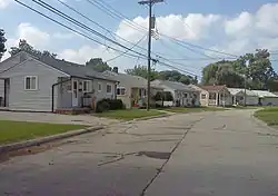 After the end of World War II, the federal government decided to sell houses to individual residents, with preference given to veterans. In 1948, the local township took over operation of water and sewer services for the subdivision, and in 1953, sales of individual homes began. However, by as early as 1962, some units had deteriorated to the point that demolition was required.[2] Over the years, home ownership declined and some units deteriorated further, earning the neighborhood the pejorative name, "Shacktown."[3] Both elementary schools in the neighborhood were closed in 2010. The Hoover Elementary School building was torn down and the site is vacant. Jefferson-Barns school building now houses the Jefferson-Barns Community Vitality Center.[3] Despite efforts to revitalize the area, low-income residents, apathy, and disrepair have remained.