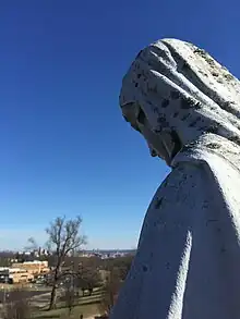 A statue of Mary Mother of Jesus overlooks Dixie Highway, the Sisters of Notre Dame campus (SND) and Notre Dame Academy (NDA).