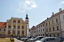 The town hall is among the landmarks of the town square. It is a Renaissance building, first mentioned in 1593. It was rebuilt in the Baroque style in 1745.[9]
