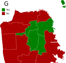 Proposition G would increase the sales tax by 0.5% for a period of ten years or until the California state government instates a sales tax hike of 1% or more for at least one year. This proposition required a two-thirds majority to pass.