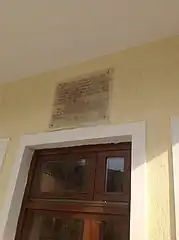 The memorial plaque honoring Goce Delčev, placed above the entrance door on August 2, 1951