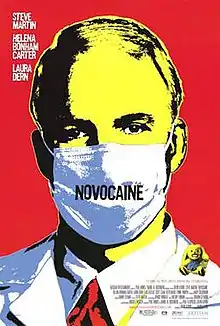 Novocaine is a 2001 American black comedy thriller film written and directed by David Atkins and starring Steve Martin, Helena Bonham Carter, Laura Dern, Lynne Thigpen and Elias Koteas. It was shot in the Chicago, Illinois area. The film premiered at the 2001 Toronto International Film Festival and went on to screen in limited release in the United States on November 16, 2001.