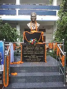 The statue of ex-student, professor and one of Assam's noted litterateurs Mahim Bora at the college campus.