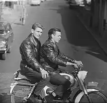 Nozems were young people who dressed in jeans and leather jackets, listened to rock 'n' roll, and gathered near snack bars on their mopeds. Their hairstyle was characterised by a styled, greased quiff.