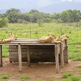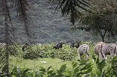 Nsele Valley Park is a natural setting, designated as a protected area committed to conserving wildlife and plant species.[7] It provides a home to numerous species of animals, such as African bush elephants, African buffalos, Impalas, Sitatunga antelopes, hippos, crocodiles, lions, rhinoceroses, giant elands, Roan antelopes, zebras, giraffes, bushbucks, oribis, giant pangolins, wildebeests, python, primates, and various bird species.[7][2][5]