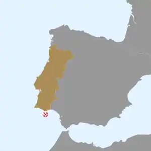 The approximate location of Mercedes off Cape Santa Maria on the south coast of Iberia