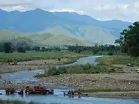 These first settlers included tribes of Bugkalots or Italons, Abaca and Buquids.[6] Settlements were built along the banks following the river's undulations. The Ilongots, meaning people of the forest, were the fierce headhunters and animist tribes who occupied Carranglan and the mountainous terrain of Sierra Madre and Caraballo.[7] The head hunting communities were nestled along the riverbanks of Rio Grande's tributaries in the north. Abaca and Italon were subgroups of Bugkalot people, meaning river settlers. Ilongots survived mainly by fishing and hunting. Food production was a secondary occupation. The agriculture-based community of Caraclans and Buquids[8] were settled in Bongabon and Pantabangan along the riverbanks of Rio Grande's tributaries in the northeast.[9]