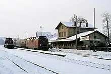 As a result of the shortage of railway materials during the Second World War, the line between Nuremberg-Laufamholz and Hersbruck was reduced to single track in 1943. During the reconstruction of the Nuremberg–Lauf section for the Nuremberg S-Bahn in 1983, the second track was re-installed and electrified. As part of the extension of S-Bahn operations from Lauf to Hartmannshof, the line was blocked to all traffic between Lauf and Hersbruck from 1 August to 14 September 2009.[3] During this period, the second track was restored, installations for overhead wire were built and the upgrading of stations was started.[3] On 14 December 2009, new platforms were opened at Ottensoos, located about 300 metres closer to the centre of the town than the old station.[4] On 15 November 2010, the reconstructed second track was opened between Lauf and Hersbruck.[5]