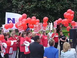 Members of the New Zealand Nurses Organisation on the steps of Parliament House seeking pay parity for the primary health care sector