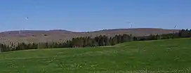 ![]() View of nuttby Mountain from Highway 311, showing windturbines and communication towers | |