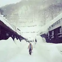 Walkway in Tsuru-no-yu Onsen in winter.