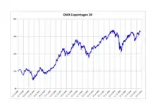 - ↑ "Index info OMXC25, OMX Copenhagen 25 Index, (DK0060775369) - Nasdaq". www.nasdaqomxnordic.com. Retrieved 2020-01-23.