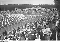 Building work on the 16-acre (65,000 m2) complex employing Russian prisoners of war commenced in spring of 1914, when present-day Słubice was still part of German Frankfurt (Oder), but due to the effects of World War I wasn't completed until 1927. Despite its name and contrary to common belief, the Olympic Stadium (originally named Ostmarkstadion) was not built for the 1936 Summer Olympics.[2]