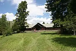 The OTO Homestead and Dude Ranch was the first dude ranch in the US state of Montana. It was started by James Norris (Dick) Randall and his wife Dora after they purchased squatters rights on a small cabin along Cedar Creek in the Absaroka Mountains.[1] The original cabin had a dirt floor cabin with a sod roof. Randall courted wealthy eastern clients (the Dudes) and by 1912 they came to the OTO to experience a "genuine" western ranch lifestyle. The property grew to meet the needs of guests and by the 1920s included an impressive lodge (1921), cabins, barns, post office, and outbuildings. Notable guests included Theodore Roosevelt and Marcellus Hartley Dodge, Jr.[1]