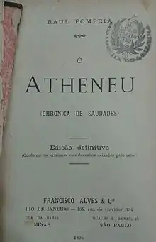 O Ateneu (English: The Athenaeum[1]) is a novel written by the Brazilian author Raul Pompeia in 1888, which is considered one of the most prominent examples of Brazilian Naturalism, Impressionism and Realism.[2] The book narrates, in the first person, the story of Sérgio, an eleven-year-old boy who is sent to a well-respected all-male boarding school—known as the Ateneu, hence the book's title—by his father. The Ateneu has very strict rules imposed by its headmaster—Aristarco—which cause a general sense of riot amongst the students; homosexuality is common amongst most students, which is partially explained due to the presence of just one woman in the school—the nurse and wife of Aristarco, Dona Ema—and the lack of contact with the external world.
