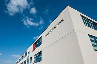 The old school was renamed on 20 July 2018 and was relaunched as co-educational under the name Oak Wood School.[2] The original closing date was put as 2016, though this was delayed in order to allow building works to be completed on the site. The old school buildings were used until the new facility was opened, at which point the old buildings were demolished, with the same happening to Swakeleys School's buildings. The new building works for both Abbotsfield and Swakeleys were funded by the London Borough of Hillingdon. The reason cited for Abbotsfield's re-opening as co-ed was due to the school's low admission rates and performance.[3]