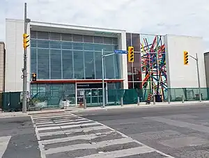 Oakwood station has an art installation by Nicolas Pye displayed on the main station entrance façade consisting of a photograph of colourful pick-up sticks on a white background.[6][7] The work suggests the intersection of transit routes on a map as well as symbolizing cultural diversity in the neighbourhood.