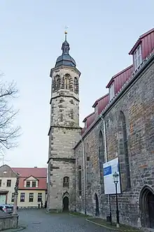 The Oberkirche (pronounced [ˈoːbɐˌkɪʁçə], "Upper Church") in the Thuringian town of Arnstadt, Germany, is a former Franciscan monastery church mainly built in the 13th century. Since 1538, it has been used by the Lutheran parish of Arnstadt, which today belongs to the Arnstadt-Ilmenau church district of the Protestant Church in Central Germany. It is a listed building.