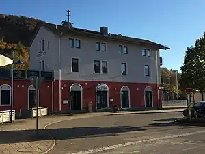 Oberkochen station is a railway station in the municipality of Oberkochen, located in the Ostalbkreis district in Baden-Württemberg, Germany. The station lies on the Brenz Railway. The train services are operated by DB Regio Baden-Württemberg and SWEG Bahn Stuttgart.[2]