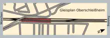 The current station is situated in the northern part of the village. The station has three platform tracks. Track 1 is used by line S1 services of the Munich S-Bahn towards the city centre. Track 2 is used by S-Bahn services terminating or starting in Oberschleißheim or being overhauled. A single-track siding to the north of the station is reached from here. Track 3 is used by S-Bahn trains towards Freising and the Airport. Track 1 and 2 are located on a central platform, while track 3 is on a side platform. The platform can be reached through underpasses. The northern underpasses has lifts, giving access for the disabled, and connects to the bus stop in the station forecourt. Park and ride parking is at the southern end of the station.[5] The southern end of the station is crossed by a road bridge.