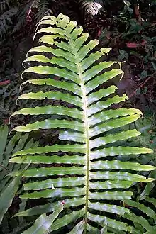 Oceaniopteris cartilaginea, synonym Blechnum cartilagineum,[1] is known as the gristle fern or soft water fern. It is a resilient and abundant fern growing in eastern Australia, seen in rainforest and eucalyptus forest. The new growth is often pink or reddish in colour.
