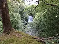Ochiltree Castle (meaning: "the lofty dwelling-place") was a castle built on a promontory by the Lugar Water, East Ayrshire, Scotland across from Auchinleck Castle. Built by the de Colville family in the 12th century, it was destroyed in 1449, by Sir William Douglas.
