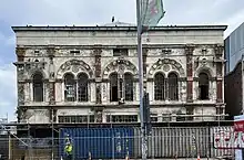 The building was severely damaged in the February 2011 Christchurch earthquake. Demolition was ordered by the Canterbury Earthquake Recovery Authority in January 2012.[15] In September of that year, the rear of the building was demolished.[16] The front of the building was protected by a stack of shipping containers placed in Tuam Street.[17]