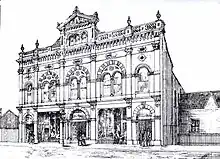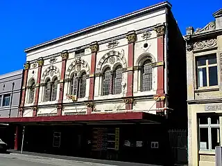 A syndicate of citizens formed the Public Hall Company Ltd and through this commissioned the building.[1][2] The theatre, located in 214 Tuam Street, was built in 1883 to a design by Thomas Stoddart Lambert (1840–1915).[1] It had a capacity of 2,200 people, 600 of whom fitted into the gallery. The stage was initially 60 feet (18 m) wide and 40 feet (12 m) deep. The building was opened on 20 July 1883, with the Mayor of Christchurch, George Ruddenklau, presiding.[3]