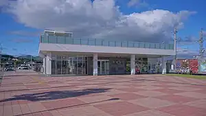 Japanese National Railways opened Oga Station on December 16, 1916 as Funakawa Station (船川駅), serving the town of Funakawamianto, Akita. It was renamed to its present name on April 1, 1968. The station was transferred to JR East after privatization of the JNR. The station building was renovated in 2012,[1] including installation of Namahage statues.[2] The station building was replaced with a new one 100 meters south in 2018 to support tourism and environmental initiatives.[3]