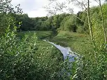 At times of low water, the northwestern tip of Ogston Reservoir reveals the course of the River Amber.