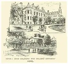 Money was collected from taxes levied during the Civil War to care for the dependents of soldiers, but the government mishandled the money. By the war's end, several families were living in county infirmities under deplorable conditions. Seeing this, soldiers still living began contacting government officials, requesting that something be done to help the families of the fallen soldiers. Eventually, the Grand Army of the Republic (GAR), a federation the veterans formed after the close of the Civil War to foster comradeship, financed the purchase of a home for veteran's orphans in the city of Xenia. Xenia was chosen because people from Greene County had long been interested in the plight of the veterans' families, and Reverend P.C. Prugh had been raising funds for the project for some time. Rev. Prugh is thus referred to as the "Father" of the movement to establish a home. Additionally, Chaplain George W. Collier is credited with being the first to suggest the idea of a home to the GAR.[1] In 1869, the Grand Army of the Republic established the Ohio Soldiers' and Sailors' Orphans' Home in Xenia, Ohio.
