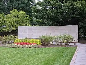Ohio Veterans Plaza is a memorial on the east side of the Ohio Statehouse grounds, in Columbus, Ohio, United States, commemorating "Ohio men and women who have served our country since World War II, as well as those who will serve in the future". Designed by John Schooley, the plaza features a lawn flanked by two Ohio limestone walls with inscriptions written by Ohio military personnel.[1]