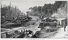 Manson & Clark put in a siding, 2 mi 28 ch (3.8 km) south of Oio, between 1915[11] and 1917[4] to serve their timber mill, which had a tramway running to the north west.[12] The mill, described as United Sawmills in 1932,[13] burnt down in 1937[14] and the siding closed on 3 April 1949.[4] The name remains as a road and a locality.[15]