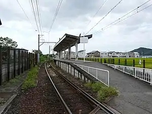 Okazakimae Station is served by the Kishigawa Line, and is located 5.4 kilometers from the terminus of the line at Wakayama Station.