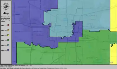 Table of United States congressional district boundary maps in the State of Oklahoma, presented chronologically.[3] All redistricting events that took place in Oklahoma between 1973 and 2013 are shown.