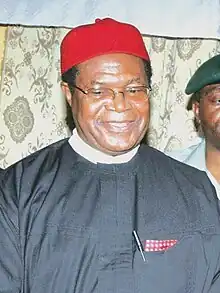 Dr. Okwesilieze Nwodo // ⓘ (Okwy) (born 28 July 1950 in Nsukka, Nigeria[1]) is a Nigerian politician who was elected Governor of Enugu State in January 1992 during the Nigerian Third Republic.[2][3] Later he became the national secretary, national chairman, and a senior politician in the People's Democratic Party (PDP).[4]