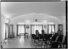 In 1850 Benicia was the original County seat of Solano County, and the first floor of the Hall was used as the Solano County court room and offices prior to the completion of Benicia's city hall. The second-floor rooms, with remarkable ornate woodwork made by California frontier craftsmen, was used for the Lodge.[4]