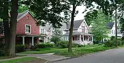 The Old West Side contains primarily small, one family homes located on tree-lined streets. These houses are typically two stories in height with six or seven rooms. About 85% of the houses are of frame construction, and the majority are clad with clapboard. Also included are houses with shingled or stuccoed exteriors, and about 15% of the houses are brick. Many of the houses have front gabled roofs and a wide pillared front porch. The larger houses, predominantly along West Liberty, in the neighborhood are generally irregular in plan, have additional side porches, and contain more architectural detail and elaborate ornamentation.[3]