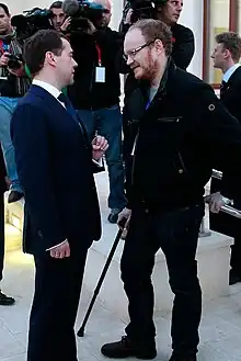 Oleg Kashin talking to Russian president Dmitry Medvedev in Jericho, 2011