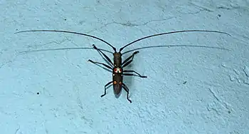 Olenecamptus bilobus is a species of beetle in the family Cerambycidae. It was described by Johan Christian Fabricius in 1801, originally under the genus Saperda. It is known from Bhutan, Myanmar, India, Papua New Guinea, Indonesia, Laos, Seychelles, Madagascar, Australia, Sri Lanka, Japan, Sumatra, Java, Philippines and Taiwan.[1]