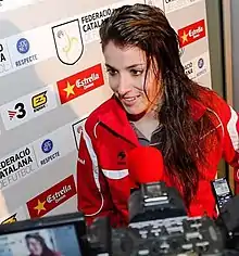 She trained and has been involved with the senior national team since the 2012–2013 season.[4] Her match debut happened on 26 November 2015, coming on as a substitute during Spain's UEFA Women's Euro 2017 qualifying 3–0 win against Republic of Ireland in Dublin. At the end of that match, she had a shot deflected off Sophie Perry which resulted on Spain's third goal.[6][7]