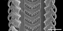 SEM photo of radula of Oligohalinophila dorri. Scale bar is 100 μm.