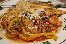 Olive Garden serves several types of Italian-American cuisine including pasta dishes, steaks, and salads. The company advertises its breadstick product and centers its lunch menu around it. Additionally, the company advertises that its soups and sauces are made fresh in each location daily instead of importing them from a commissary or outside vendor.[22]