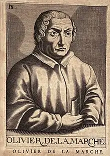 Olivier de la Marche (1425–1502) was a courtier, soldier, chronicler and poet in the last decades of the independent Duchy of Burgundy. He was close to Charles the Bold, and after his death held the important position of maître d'hotel to his daughter Mary of Burgundy,[1] and her husband, and was sent on a mission as ambassador to France.