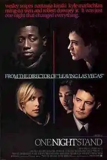 One Night Stand is a 1997 American drama film written and directed by Mike Figgis. The film stars Wesley Snipes, Nastassja Kinski, Kyle MacLachlan, Ming-Na Wen and Robert Downey Jr. The first draft of the screenplay was written by Joe Eszterhas, who had his name removed from the project following Figgis's rewrite.