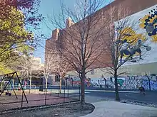 As residential development in the East Village continues to increase in the 21st century, the preservation of Open Road Park ensures that residents will have ample space for sports along with opportunities for students to learn about nature by actively participating in the maintenance of the park’s garden. The playground includes basketball courts, a soccer pitch and swings.