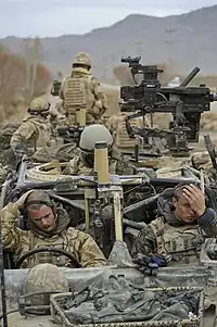 The Royal Air Force Regiment used a variety of vehicles including Pinzgauer Vector's, Vixen Land Rover's and WMIK Land Rover's to externally protect Kandahar Airfield and the Wing was controlled by a Wing Commander who was responsible for the safety of initially 12,000 personnel: